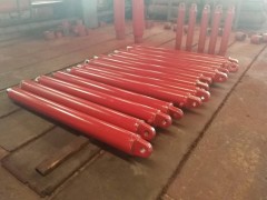中国液压支架立柱千斤顶,液压支架立柱支撑在底座和顶梁或掩护梁之间调节支架高度并承载的液压缸,要求有较高的抗压抗弯强度和密封性能.常见为双作用式,有全液压和液压加机械调整两种伸缩方式.按液压伸缩级的数量可分为单伸缩和双伸缩式,后者伸缩量大,调整方便,但结构较复杂.机械调整多采用卡环加长杆式,使用虽不如全液压的方便,但结构简单,维护容易.立柱主要由缸体,活柱,导向套和密封件等组成.缸体采用强度高,延伸性好的无缝钢管制成.进液方式多用结构简单的外进液式,进回液口位于缸体上,必要时也用内进液式,其进回液接头位于活柱头部.立柱上下端多用球面连接,可减少偏载且便于转动和拆装. 液压支架千斤顶是液压支架上除立柱之外用于完成推移,护帮和调架等功能的其它液压缸总称.动作原理和结构型式与立柱类似,多为单伸缩双作用式.所承受载荷一般小于立柱,故缸径和压力也较小,两端连接多为铰接销轴式.浮动活塞千斤顶是一种特殊结构形式,其活塞可在活塞杆上滑动,主要用于推移千斤顶. 产品覆盖郑煤机,平煤机,南车集团,林州重机,中煤北煤机,平阳重工,山东矿机,郑州四维,三一重工,沈阳天安,重庆大江,西山煤电,华亭,霍州煤电液压支架配件等厂家.提供加工定做.