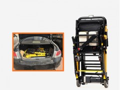 唐山老年轮椅,星轮式 星轮式爬楼轮椅的爬楼机构由均匀分布在“Y”型、“五星”或“十”字形系杆上的若 干个小轮构成。各个小轮既可以绕各自的轴线自转,又可以随着系杆一起绕中心轴公转。在平地行走时,各小轮自转,而爬楼梯时,各小轮一起公转,从而实现爬楼梯的功能。目前星型轮机构爬楼轮椅不论是Y型、十字型还是五星型,由于其星轮轮距和深度固定,而楼梯台阶的高、宽尺寸不一,在爬行中容易出现错位打滑现象,存在的安全隐患。国内星型轮爬楼机由于没有防滑制动功能,在上下楼时需要人力牵引以防止其往下滑行,对于自重近50公斤的轮椅加人体重量,一旦出现打滑将难以控制。因此,星型轮机构爬楼机的安全性还有待提高,但由于其结构简单和造价低廉,在经济不宽裕的家庭仍有的市场。 国内外发明了多种星型轮式爬楼轮椅,大多数都采用两组由3个、4个或者5个小轮组成的星型轮,星轮式爬楼轮椅由于安全性不高以及体积较大,且难以在所有住宅楼梯上使用(对台阶宽高尺寸有限制),因此难以普及。这也是星型轮式爬楼梯轮椅尽管发明专利很多,真正实施和推广的却很少的主要原因。