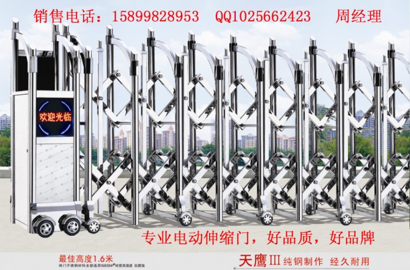 特点:门体运用了焊接抛光技术,管与管之间密实连接,坚固无比,管壁厚达到了足0.8mm,可抗10级以上的大风,门体行走无声自如,直线行驶不跑偏,电机运用了国外静音技术,超低声行驶。门排结实稳固。LED显示屏可以任意输入500个字节的文字,彩灯闪烁耀眼。