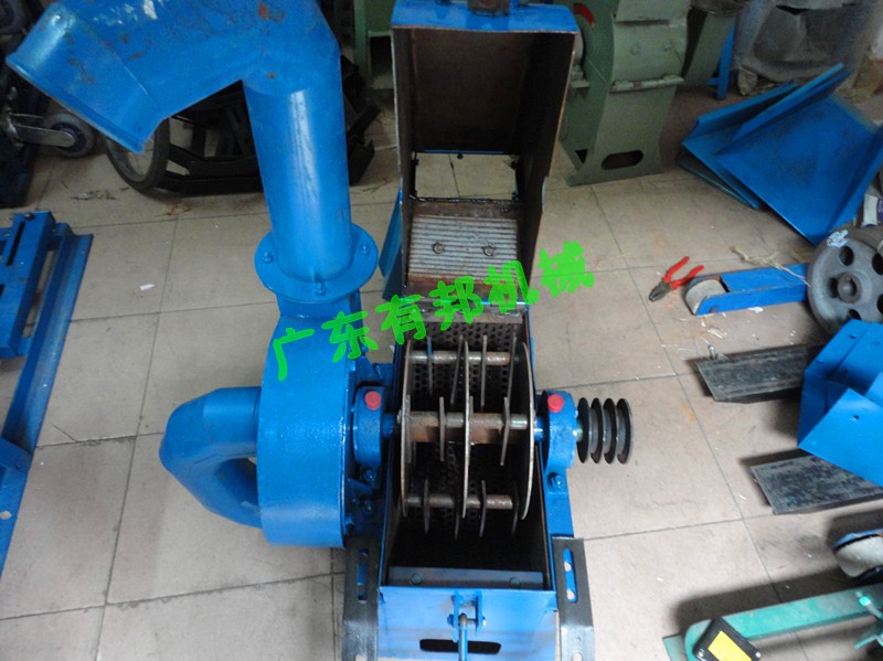 工作原理:该机是切向进料锤片式粉碎机。在粉碎室中,转子高速旋转,饲料通过锤片的敲打和齿板的摩擦作用而粉碎成细粒,从筛孔中漏下,然后有离心式风机吸送至储料袋或集料室。