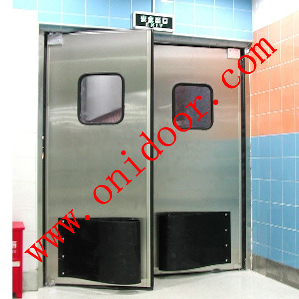 2。不锈钢自由门四周镶胡橡胶封条,具备了防虫,隔尘,隔风,隔异味的功能,从而达到提高环境卫生的功效。 而传统的木质门,铝合金门具备此功效并不明显,因而不锈钢自由门相比普通的门更符合卫生标准的需求。