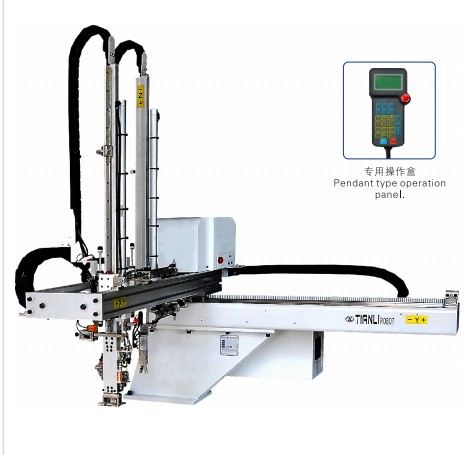 TLX系列适用与15-350吨的各型卧式射出成型机,用于取出两板模的成品及水口取出。型号有550/650/750/850,上下手臂型式有单截式及双截式;上下行程从550-850㎜,专用于两板模;单功能用于夹水口,全功能可以夹水口或同时夹水口于吸成品;爪旋机构,可以旋转成品90度。安装此机械手臂可增加产能(20-30%)降低产品的不良率、保障操作人员的安全性、减少人工、精准的控制生产量,减少浪费。