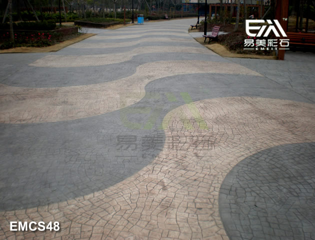 4、款型色彩丰富。传统花岗岩大理石等地材颜色比较单一,而且是该地材颜色是固有无法改变的,广东彩色艺术地坪常用的颜色和款型就有上百种,甚至可以根据建筑物的风格任意进行调配,从而产生强烈的视觉效果,使其与建筑物和周边的环境相互映衬,能使设计师的想象空间得到无限的拓展。另外,广东彩色艺术地坪的纹理也是千变万化,而且仿天然石材、砖、木效果逼真,具有很强的装饰效果。