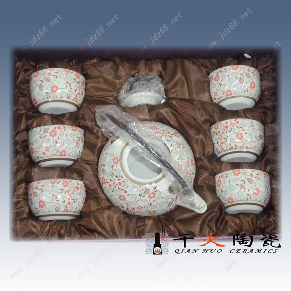 我公司作为一家植根于千年瓷都景德镇的陶瓷企业,已经发展成为一家集产品设计、开发、制造、包装等整套工艺流程为一体,具一定规模的茶具生产厂家。我公司生产的陶瓷茶具造型优美、品种繁多、装饰丰富、风格独特。还可以根据您的需要印制您需要的各种图片、添加公司LOGO图形和文字等。同时我公司还提供各类陶瓷工艺品、陶瓷纪念品、陶瓷礼品的设计加工和来样定做。选择唐龙,品质的保证;欢迎各界有识之士光临我公司参观指导!(出厂价供货,价格最优!)