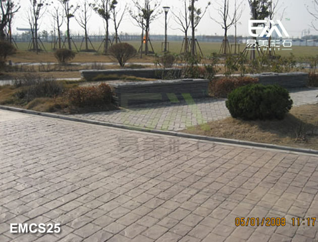 3、颜色持久。印模地坪材料采用优质进口无机颜料和科学配方加工而成,其抗紫外线、耐候性、耐老化性能优异。经大量工程实践检验长达十几年风吹日晒依旧色泽鲜亮。