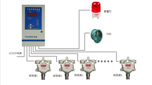 欢迎选购佛山市安特尔燃气设备有限公司提供的燃气体泄漏报警器(一主机多探头)用于检测环境空气中待测气体的浓度,可带多个检测不同气体成分的探测器(不同分机),并同时对多点进行集中控制。本系统采用微处理器作为控制单元,高精度传感器作为检测探测器,灵敏度高,响应速度快。当环境中检测到待测气体的浓度达到或超过预置报警值时,控制器立即发出声光报警,以提醒我们及时采取安全措施,并启动执行器来控制驱动排风或其它外设设备,防止中毒事故、爆炸、及火灾发生,从而保障生命、财产的安全。多个探测器可以通过485总线与安装有本公司开发的监控程序的计算机连接,更加便于工作人员对现场进行监视。
