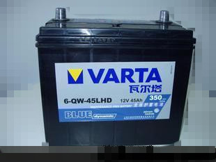 5 瓦尔塔蓄电池VARTA6-QW-45LT1HD 45AH 低温启动电流350 长238 宽128 高202 总高224 配套车型 哈飞,骐达,北斗星,爱迪尔。