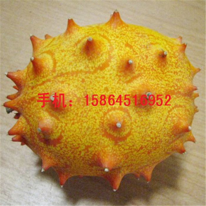 介绍:火星果又名:海参果、火参果,原产于非洲卡拉哈里沙漠,为葫芦藤本蔓生植 物,根浅根系,茎5棱,茎叶均有毛,叶椭圆形,互生,似葫芦一样攀架生长,开黄花,雌雄同株,果实外表金黄色如芒果般状,单果重100-200克,似葫芦一样攀架生长,开黄花,果实外表金黄色如芒果般状,外表带刺,十分的漂亮迷人,在国外传说它是来自火星的奇特水果,所以叫为火星果,现在新西兰、美国、澳大利亚、德国等地均有栽培,是一种一年多次种植的四季水果,果实像海参,又似带刺的橄榄型瓜,用吸管可直接吸食,多汁,味道似香蕉、柠檬和黄瓜的三种混合,最近也已在国内进口水果市场上现身,
