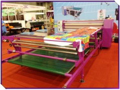 Elephant-1700B滚筒印花机适用于大型条幅、旗帜、无纺布、服装布料、毛巾、被单、鼠标垫等产品的升华转印,特别是成匹布料的连续转印。