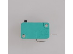 微动开关是一种施压促动的快速转换开关,因为其开关的触点间距比较小,故名微动开关,又叫灵敏开关。工作原理是:微动开关的外机械力通过传动元件(按销、按钮、杠杆、滚轮等)将力作用于动作簧片上,当动作簧片位移到临界点时产生瞬时动作,使动作簧片末端的动触点与定触点快速接通或断开。当传动元件上的作用力移去后,动作簧片产生反向动作力,当传动元件反向行程达到簧片的动作临界点后,瞬时完成反向动作。微动开关的触点间距小、动作行程短、按动力小、通断迅速。其动触点的动作速度与传动元件动作速度无关。