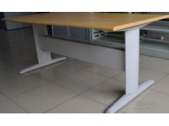 规格:2000㎜×1000㎜×760㎜,桌面采用25㎜厚聚木 屑板耐磨防火板弯曲贴面;桌架采用1.2㎜钢板模具冲折成型。表面经酸洗磷化,全封闭静电喷涂。