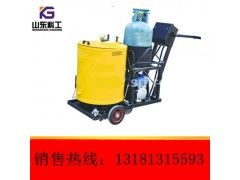 SGF-60型热沥青灌缝机以液化石油气为燃料,对灌缝料箱底部进行加热。料箱壁内填充导热油使加热快且受热均匀,在导热油层外部填充保温岩棉起到保温作用。在灌缝料熔化后,可利用手工搅拌方式加速热交换,在灌缝料达到施工要求后,启动沥青泵将灌缝料输出,手工向前(或向后)将出料口对准裂缝,推动设备进行灌缝作业。