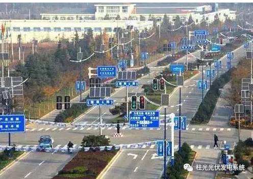 ▼ 光伏应用在交通系统中,光伏组件和蓝色交通指示牌结合,这才是真正的光伏蓝。