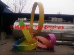 5、较大型的造型简易的不锈钢雕塑,也可不用焊接。可根据作品的形体比例直接做好钢筋骨架,用电钻在设计好的位置上打眼,把不锈钢板用铆钉固定在骨架上就可以了。这种方法要求骨架比例尺寸计算得非常准确,接缝要对的很准,否则就会产生差异,达不到预期的效果,进而影响美感。