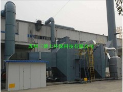 2.活性炭吸附一定时间后用热空气脱附使活性炭得到再生,脱附出浓缩的有机物被送往催化燃烧床进行催化燃烧,有机物被氧化成CO2和HO,燃烧后的废气通过热交换器预热进入氧化床的废气,热交换后降温的气体部分排放,部分用于蜂窝状活性炭的脱附再生,达到废热利用和节能的目的。整套装置由预滤器、吸附床、催化燃烧床、阻燃气、相关的风机、阀门等组成,既适合于连续操作,也适合于间断操作。